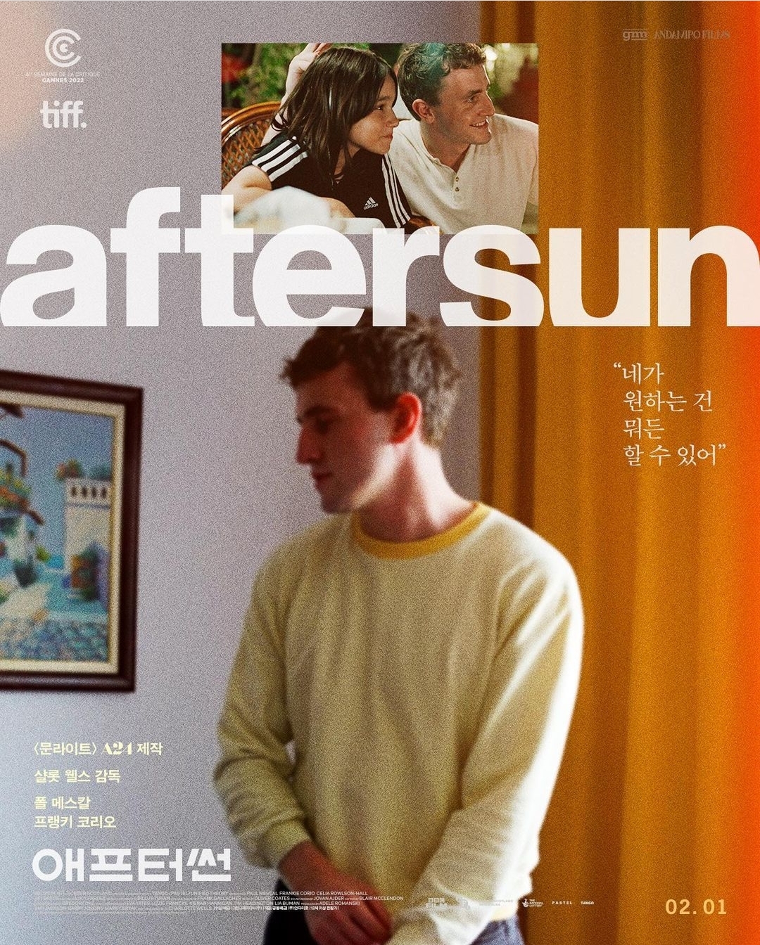 애프터썬Aftersun2월 영화제 벼락치기 그 첫번째.성인이 되어 되돌아보는, 빛바랜 색으로 이루어진 추억에 관한 이야기.난 어릴 적 아빠랑 함께했던 기억이 별로 없다. 아버지와의 유대라는 단어는 항상 부럽다.잔잔하게 파도치듯 넘실대는 감정선이 매력적이지만, 끝까지 보긴 힘들었다. 영화관에서 오랜만에 졸았다(...). 그래서 후반부 기억이 날아갔다.